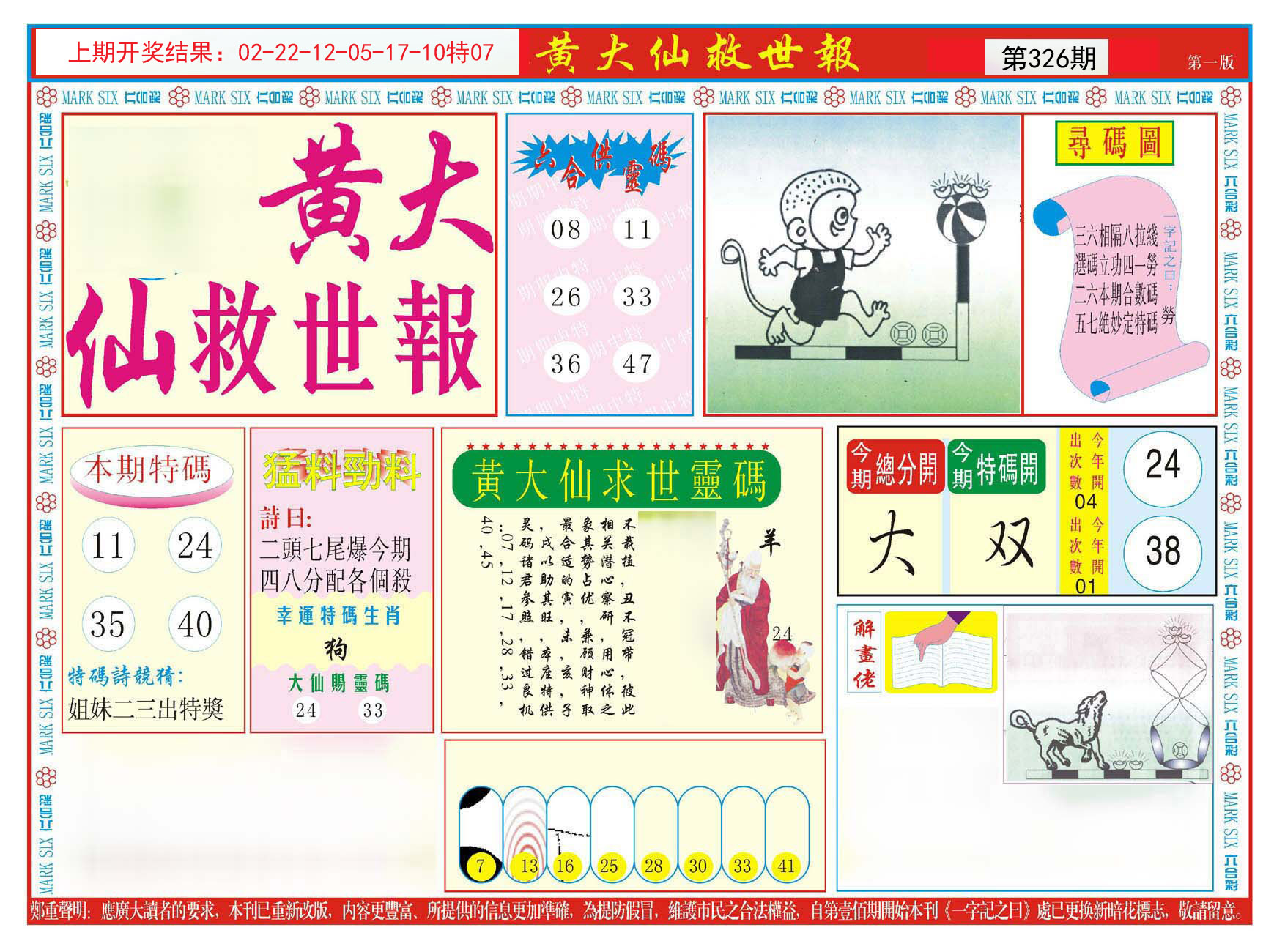 香港新新彩 326期⑥肖 | 【兔猪鼠猴马蛇】 | 虎40错 |